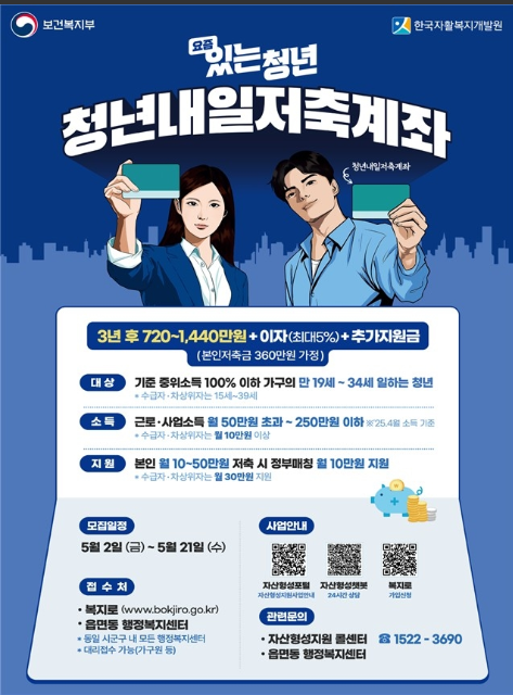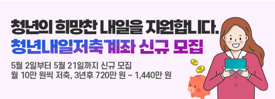 "청년내일저축계좌"가 5월 21일까지 올해 신규 가입자를 모집합니다.