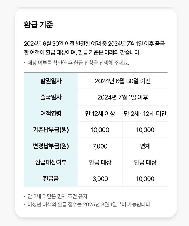 7월 1일 이전 항공권 예매 후 7월 1일 이후 출국한 경우 : 3,000원 환급